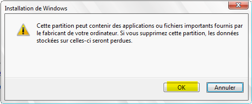 Appuyez sur le bouton OK pour créer toutes les partitions nécessaires au démarrage de Windows.