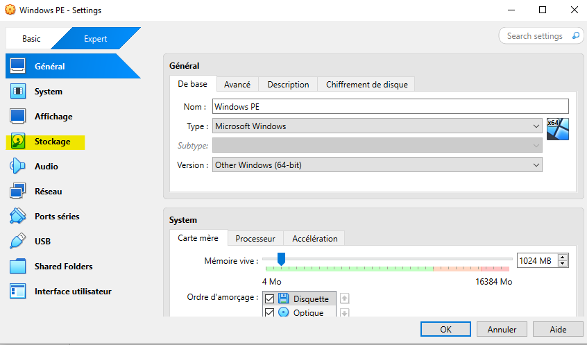 Voici la procédure pour créer une machine virtuelle pour exécuter Windows PE.